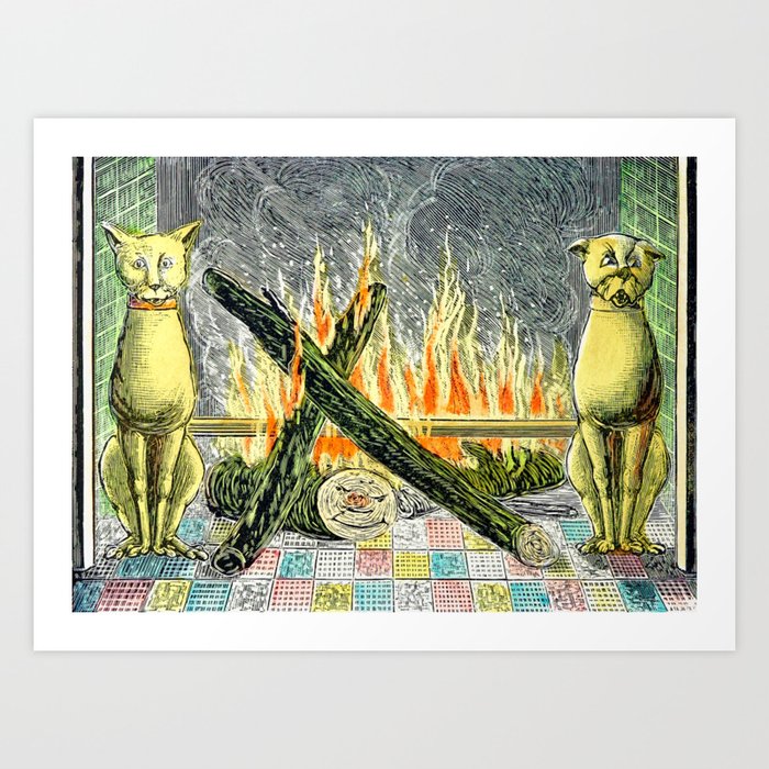 Vintage Tarot Style Mystic Cats Surrealism Art Print By Jacob