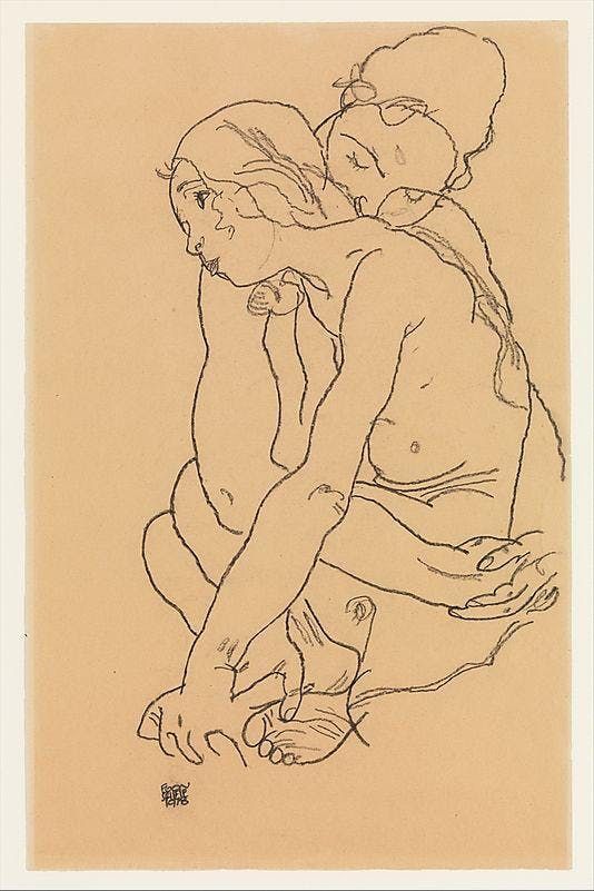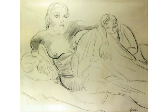 Jacob Epstein 1880 1959 Pencil Drawing Two Naked Female Models