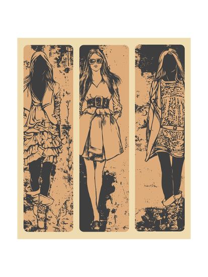 Vertical Banners With Female Fashion Models Drawing Style Vector Illustration Art Print By Jumpingsack Art Com