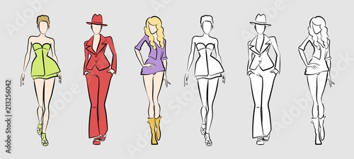 Colored Female Fashion Model Stock Vector Ac Sketch Template