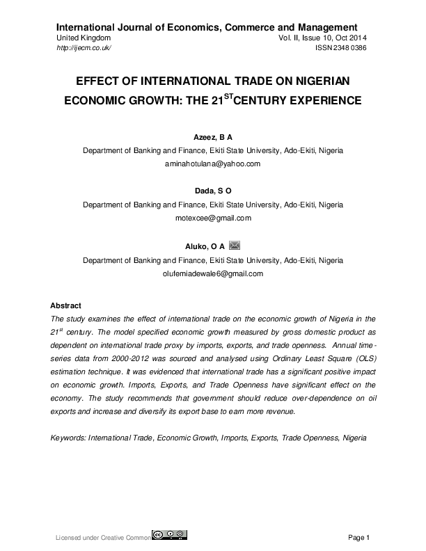 Pdf Effect Of International Trade On Nigerian Economic Growth
